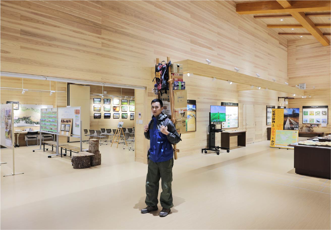 There are videos, taxidermy of animals, and panels showing bird sounds. I had the experience of "bokka," which involves carrying loads. Urban elementary and middle school students learn outdoors at places like this.