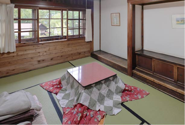 Private bedrooms equipped with a unique Japanese heating system called a "kotatsu."